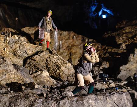 Mit der Taschenlampe durch eine Tropfsteinhöhle